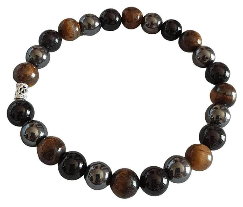 Ce bracelet sera donc un allié précieux au quotidien grâce à ses pierres recherchées pour leurs bienfaits : l'oeil de tigre, l'hématite et l'obsidienne.